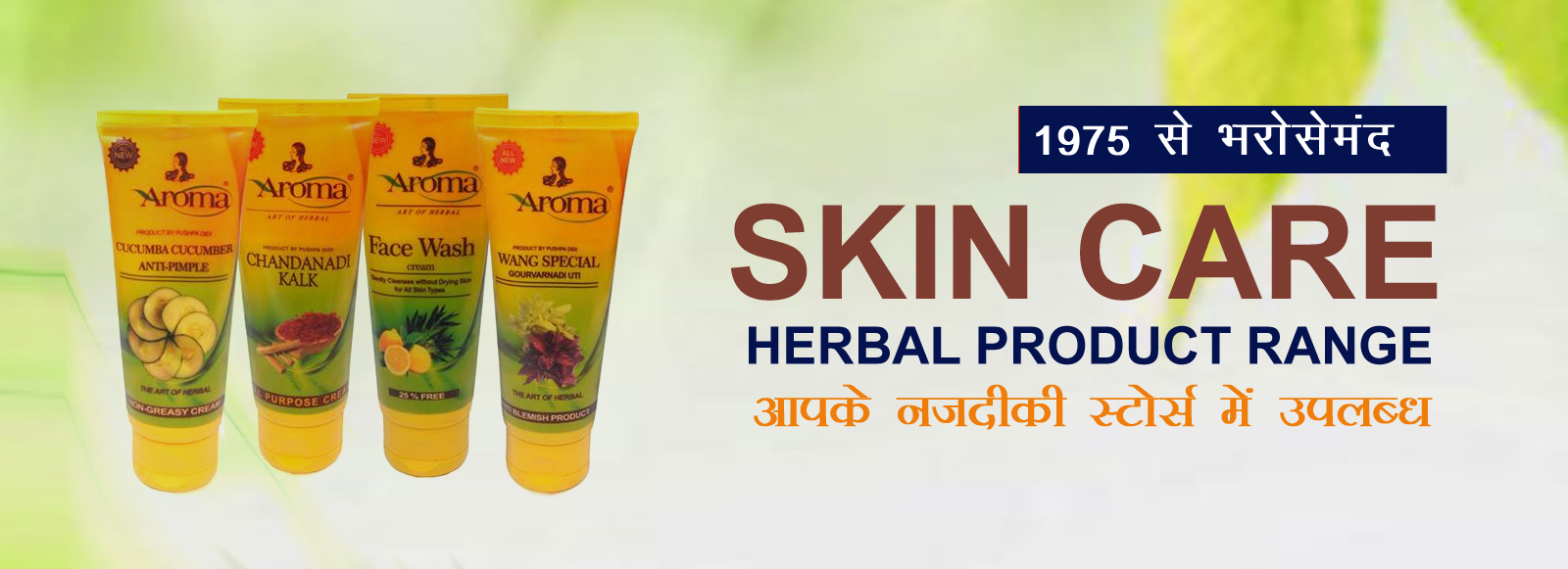 Skin Care is core line product of Aroma Herbal, a complete skin care product range avaialbe, trused since 1975. One of the oldest herbal product manufacturers.